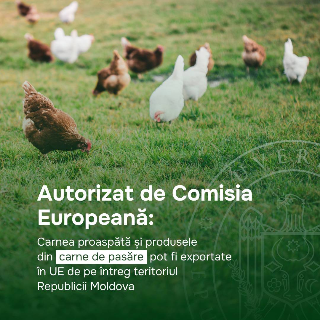 Uniunea Europeană a aprobat exportul de carne proaspătă de pasăre și produse din carne de pasăre de pe întreg teritoriul Republicii Moldova, conform deciziei Comisiei Europene din 6 februarie 2026.