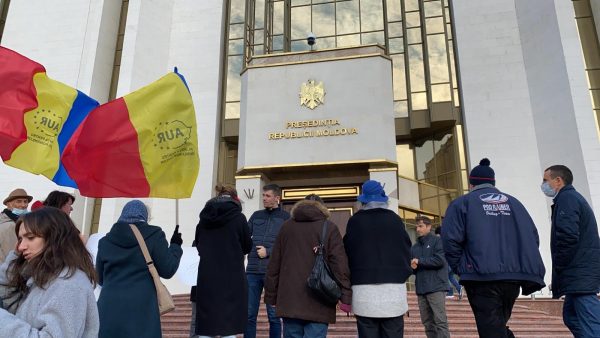 Mai mulți membri ai Alianței pentru Unirea Românilor au organizat vineri, 19 noiembrie, un flashmob în fața Președinției Republicii Moldova, unde cereau scoaterea interdicției ilegale aplicată liderului unionist George Simion.