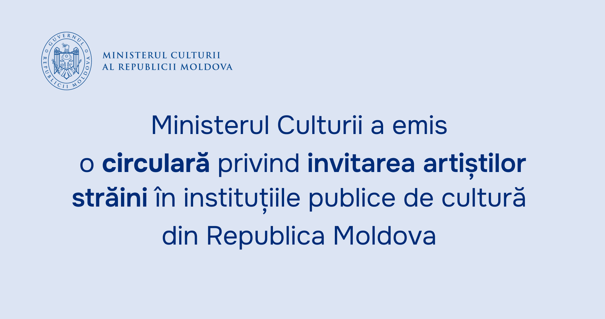 Ministerul Culturii a trimis recent o circulară către instituțiile publice de cultură și companiile de impresariat, stipulând necesitatea informării prealabile atunci când doresc să invite sau să implice artiști străini, în special din statele Comunității Statelor Independente (CSI), în evenimente culturale organizate în Republica Moldova.
