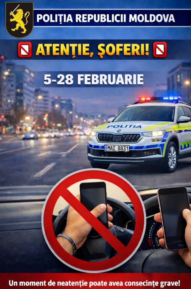Poliția Națională va intensifica măsurile de prevenire și sancționare a utilizării telefonului mobil în timpul conducerii vehiculelor, în perioada 5-28 februarie.