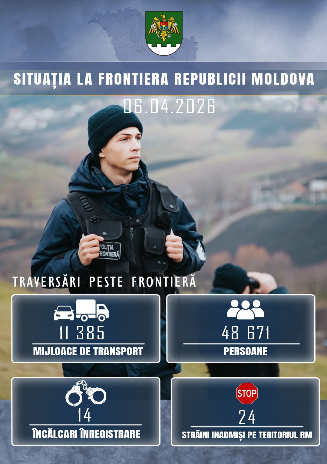 În ultimele 24 de ore, 48 671 de persoane și 11 385 de mijloace de transport au tranzitat punctele de trecere a frontierei.