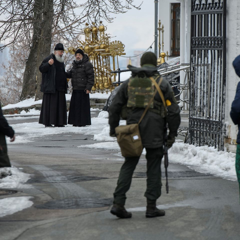 Zelenski a amintit şi de situl mănăstirii Kiev-Pecersk, care de curând a făcut obiectul unor percheziţii ale forţelor de securitate, suspiciunea fiind că adăposteşte sabotori şi armament rusesc. Vastul complex Pecersk Lavra din Kiev – în traducere, Mănăstirea Peşterilor din Kiev – este o comoară culturală ucraineană şi sediu al aripii din Biserica Ortodoxă Ucraineană care se află sub tutela Patriarhiei Moscovei. Zelenski a anunţat că s-a decis “verificarea prezenţei temeiurilor legale şi a respectării condiţiilor de folosire de către organizaţiile religioase a proprietăţii situate pe teritoriul patrimoniului istoric şi cultural naţional Kiev-Pecersk”. Înalţii prelaţi ar putea fi, astfel, evacuaţi din complex.