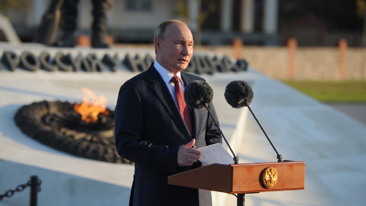 Aflat în Sevastopolul, orașul care este portul de origine al flotei Rusiei de la Marea Neagră și care este, de asemenea, cel mai mare oraș al Republicii Autonome Crimeea, republică aflată în componența Ucrainei, dar anexată de Federația Rusă în 2014, Vladimir Putin a spus că „dorința de a-și apăra și ocroti patria este în caracterul poporului rus”.